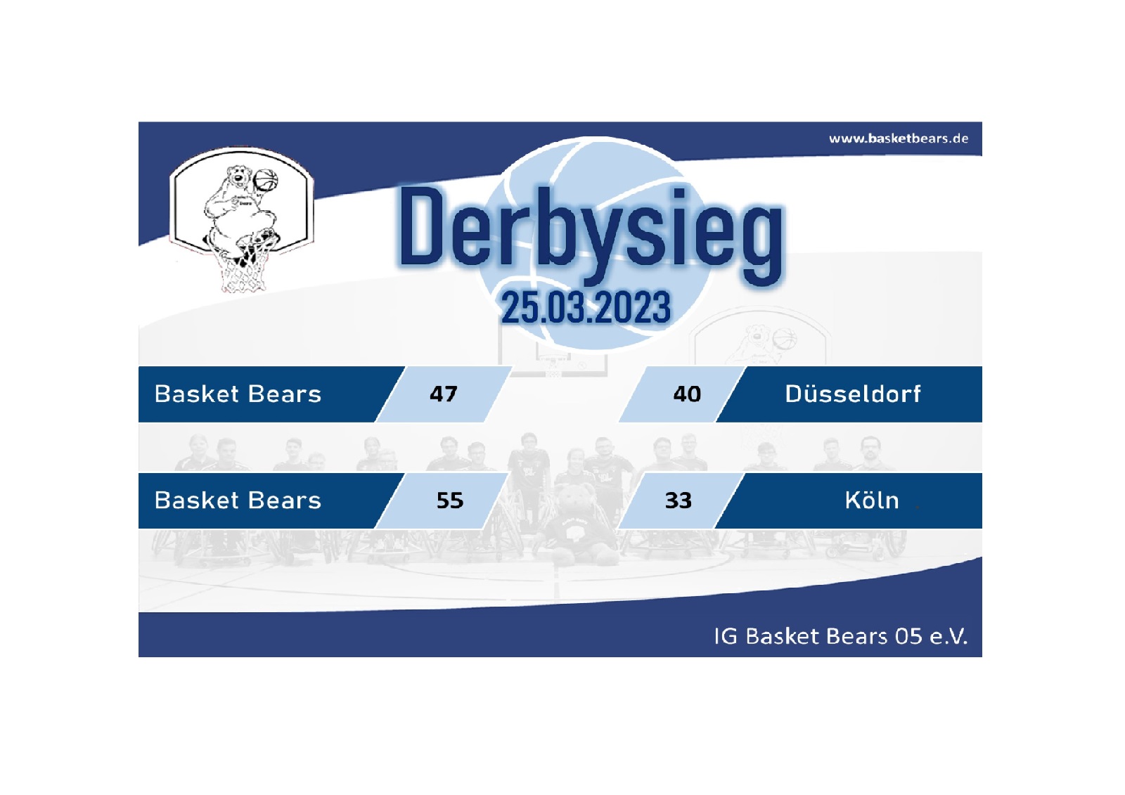 Zurück in die Zonenverteidigung hielten wir den Abstand ziemlich konstant über die letzten 10 Spielminuten. Mit dem deutlichen Endergebnis von 55:33 Punkten, durften sich unsere Bären aus Krefeld über den zweiten Sieg des Tages freuen.